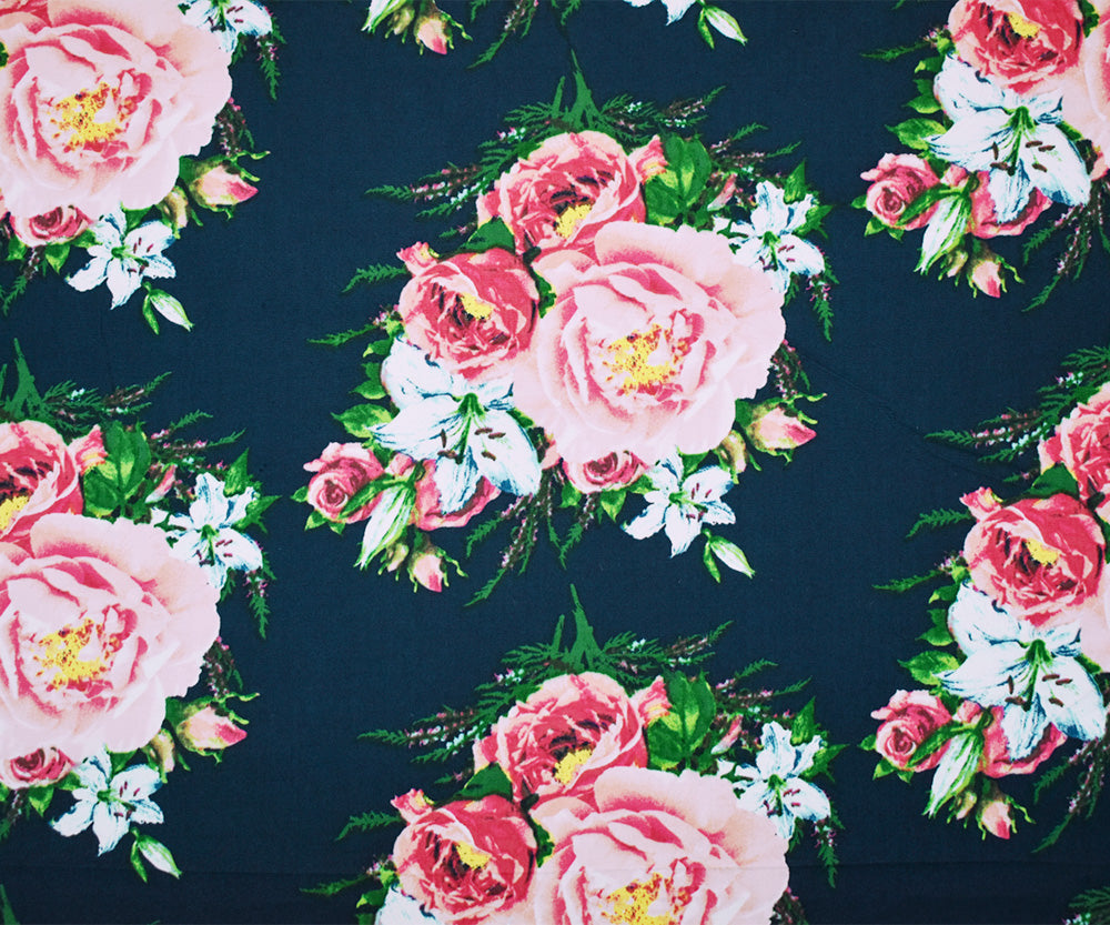 -Cotton stretch spandex poplin woven fabric printed with a floral pattern