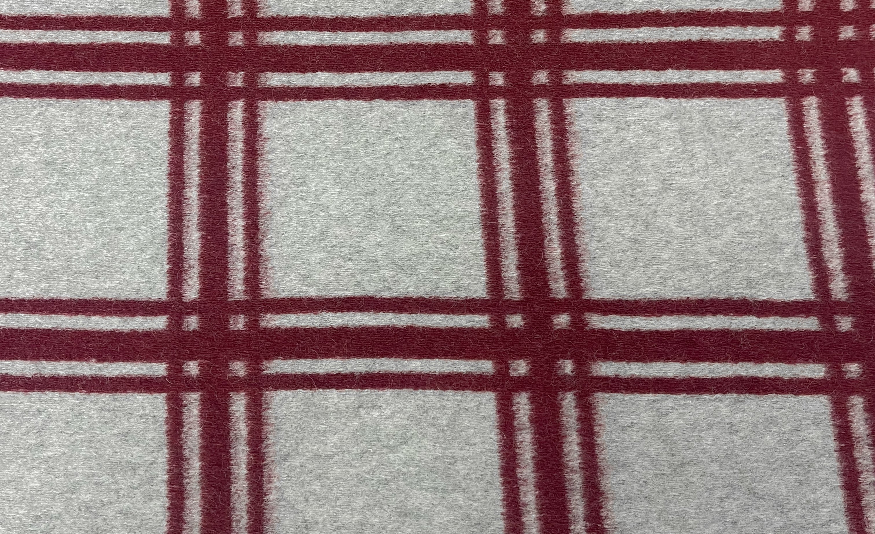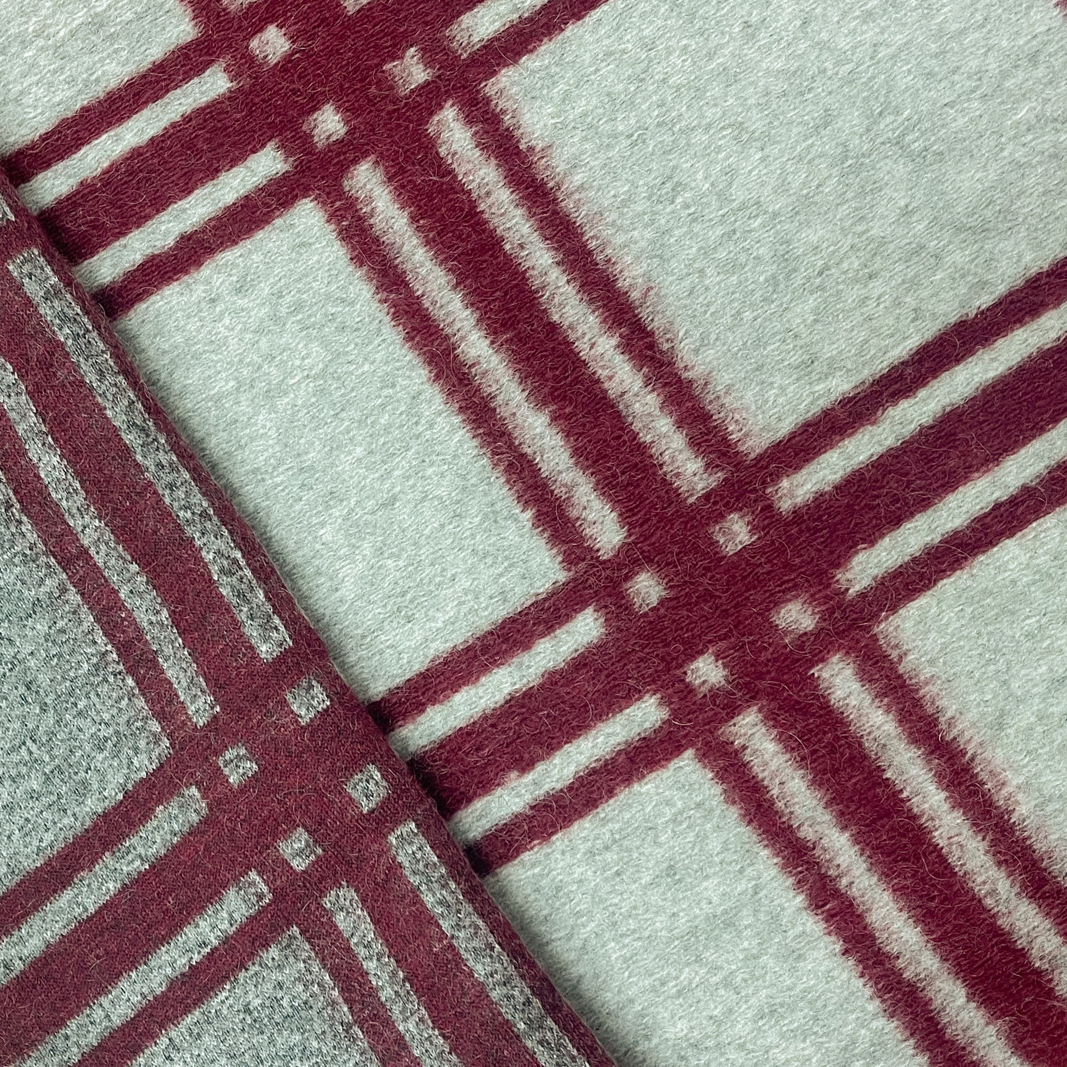 Burgundy Red-Medium Italian Boiled Wool-Poly Plaid Knit Coating Fabric