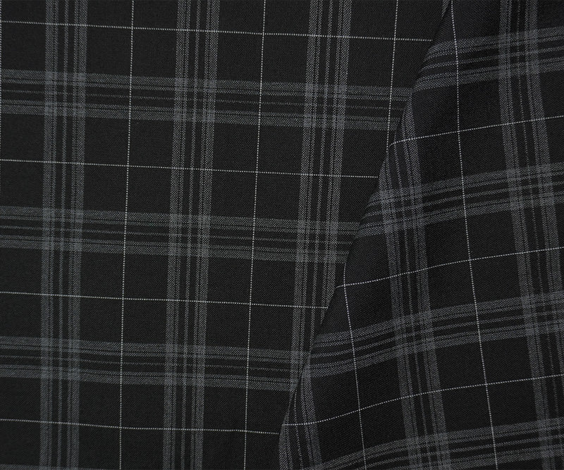 Black-Gray Poly Wool Plaid-Check Japanese Woven Shirting Fabric