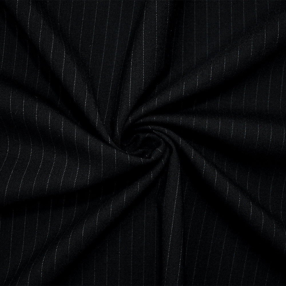 Black-Gray Tropical Poly-Wool Japanese Vertical Stripe Shirting Woven Fabric