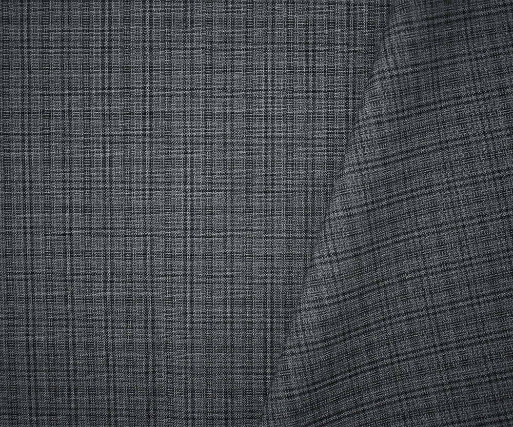 Gray-Black Poly-Wool Japanese Plaid Woven Suiting Fabric