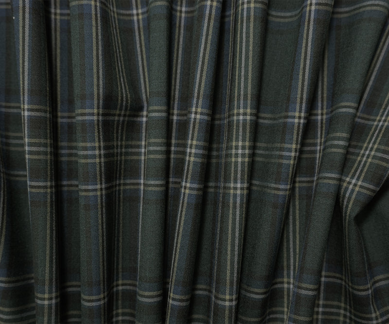 Green-Multi Poly Wool Plaid-Check Japanese Woven Shirting Fabric