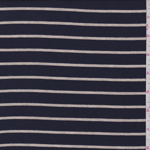 Dark Navy/Sand Stripe Jersey Rib Knit Fabric