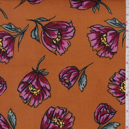 Harvest/Fuchsia Fringe Floral Double Brushed Jersey Knit Fabric