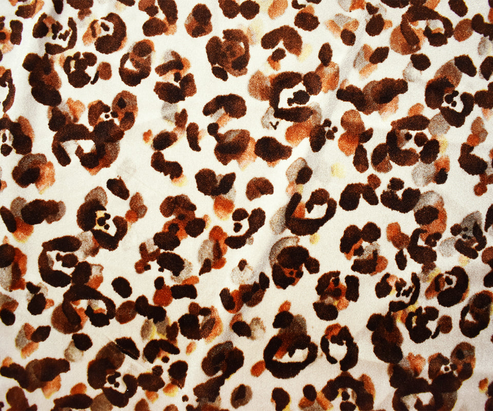 Beige-Brown-Multi Poly Abstract Leopard Print Velvet Knit Fabric