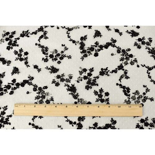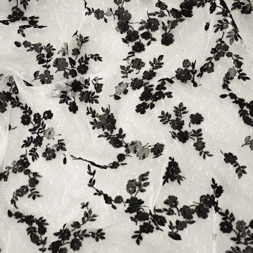 Black/White Velvet Flock Floral Printed Dot Mesh Fabric
