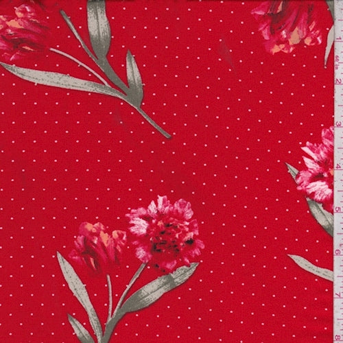 ITY Ruby/Pink Pindot Floral Jersey Knit Fabric