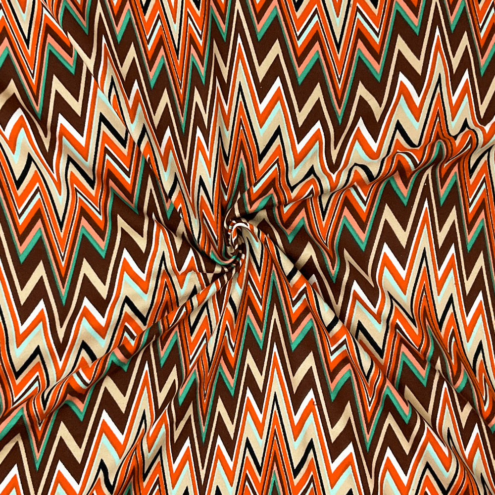 Orange-Multi Poly Stretch Spandex Chevron Print DB Jersey Knit Fabric