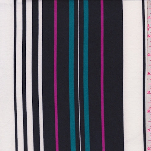 White/Black/Teal Stripe Double Brushed Jersey Knit Fabric