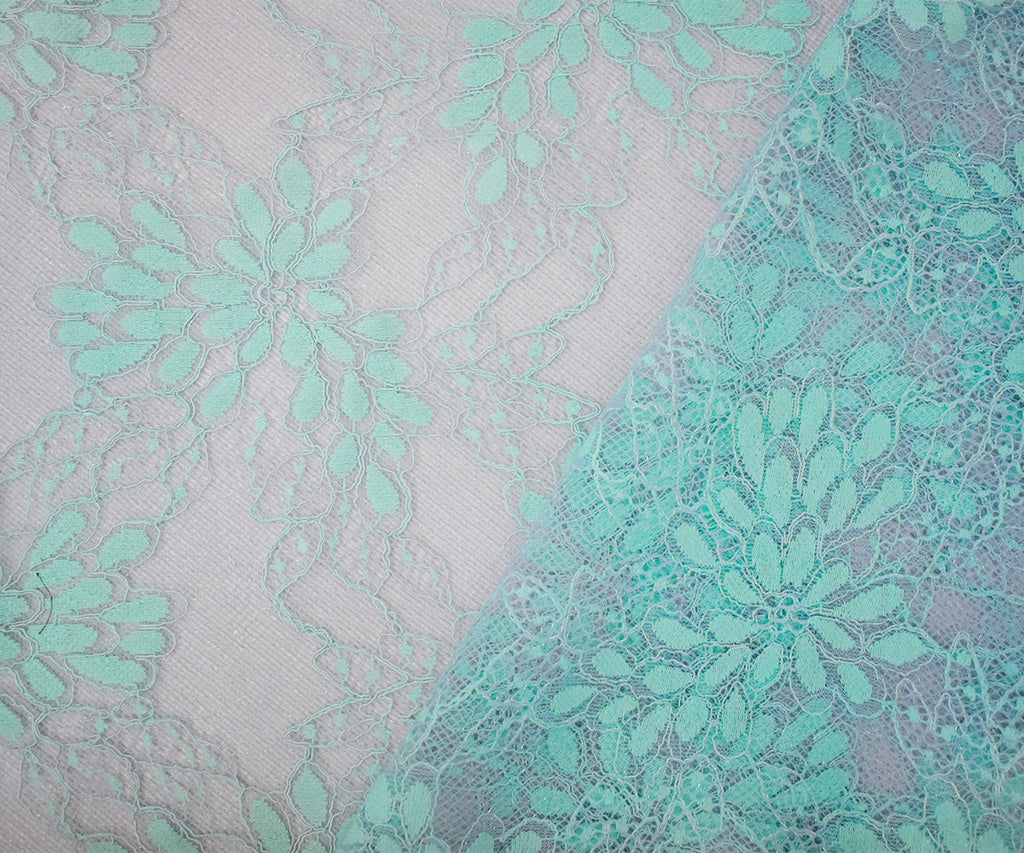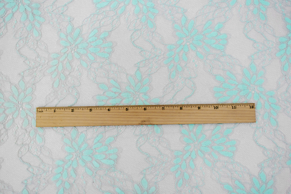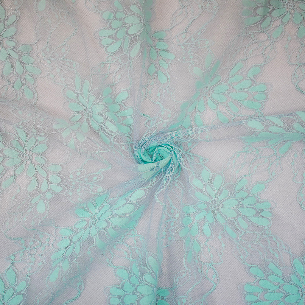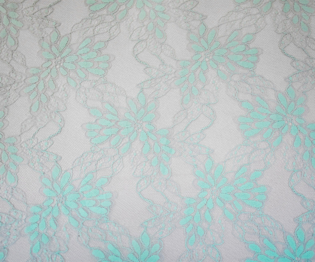 Light Gray-Blue Nylon Cotton Floral Lace Knit Fabric