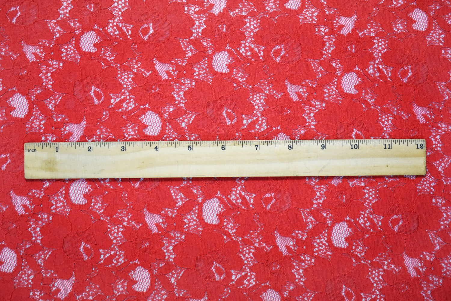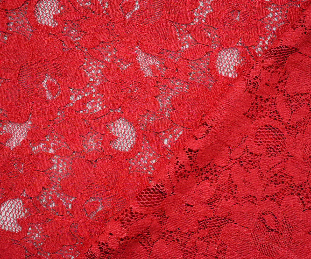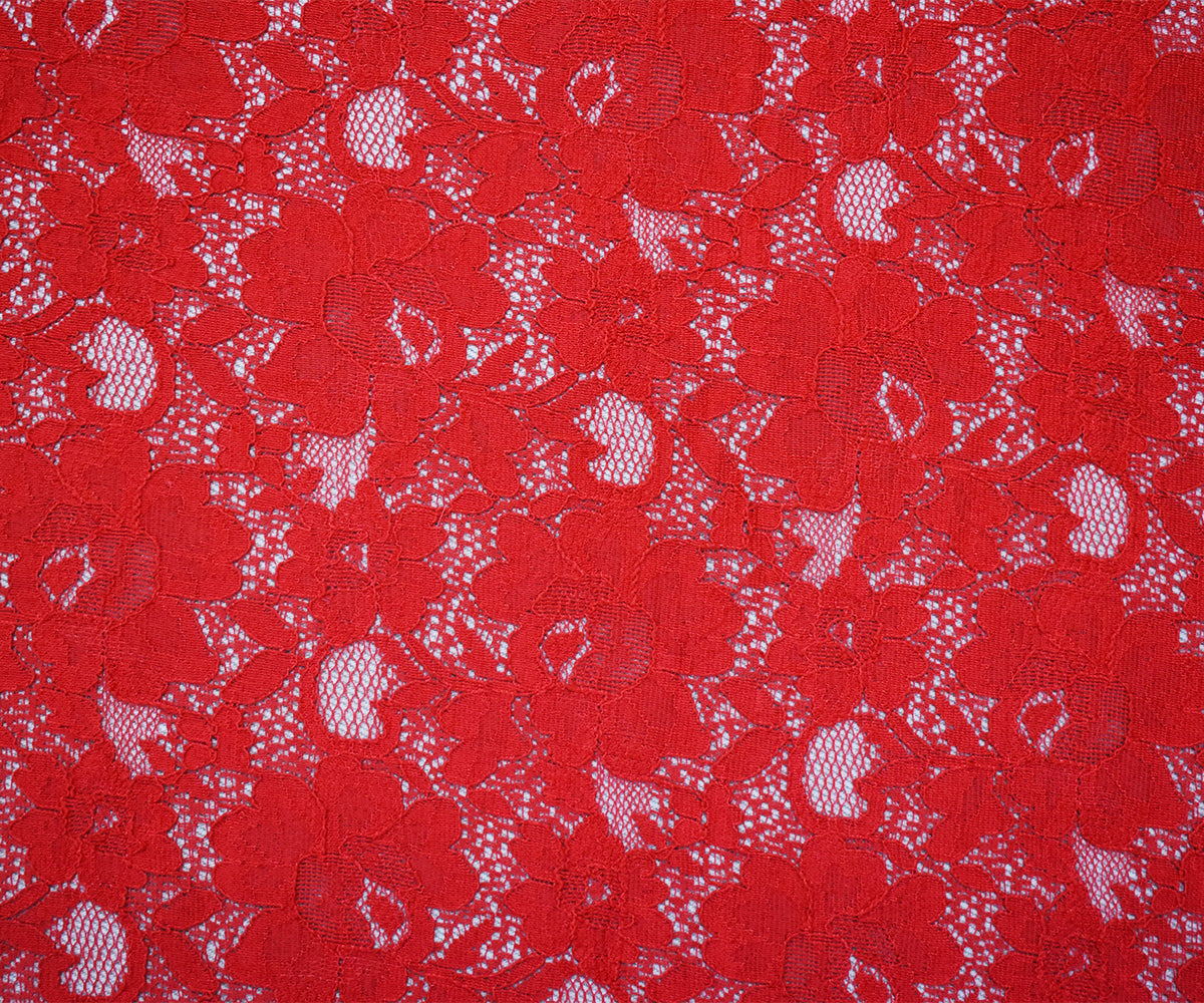 Red Cotton-Polyester Floral Crochet Lace Knit Fabric