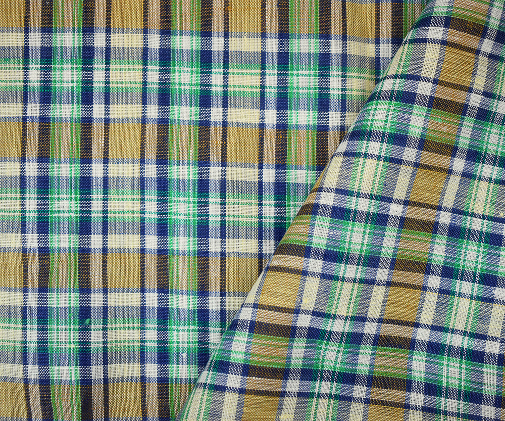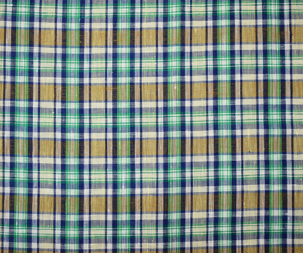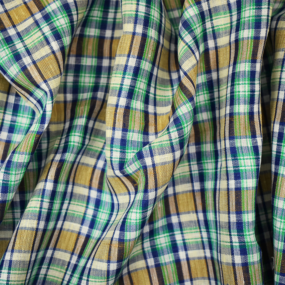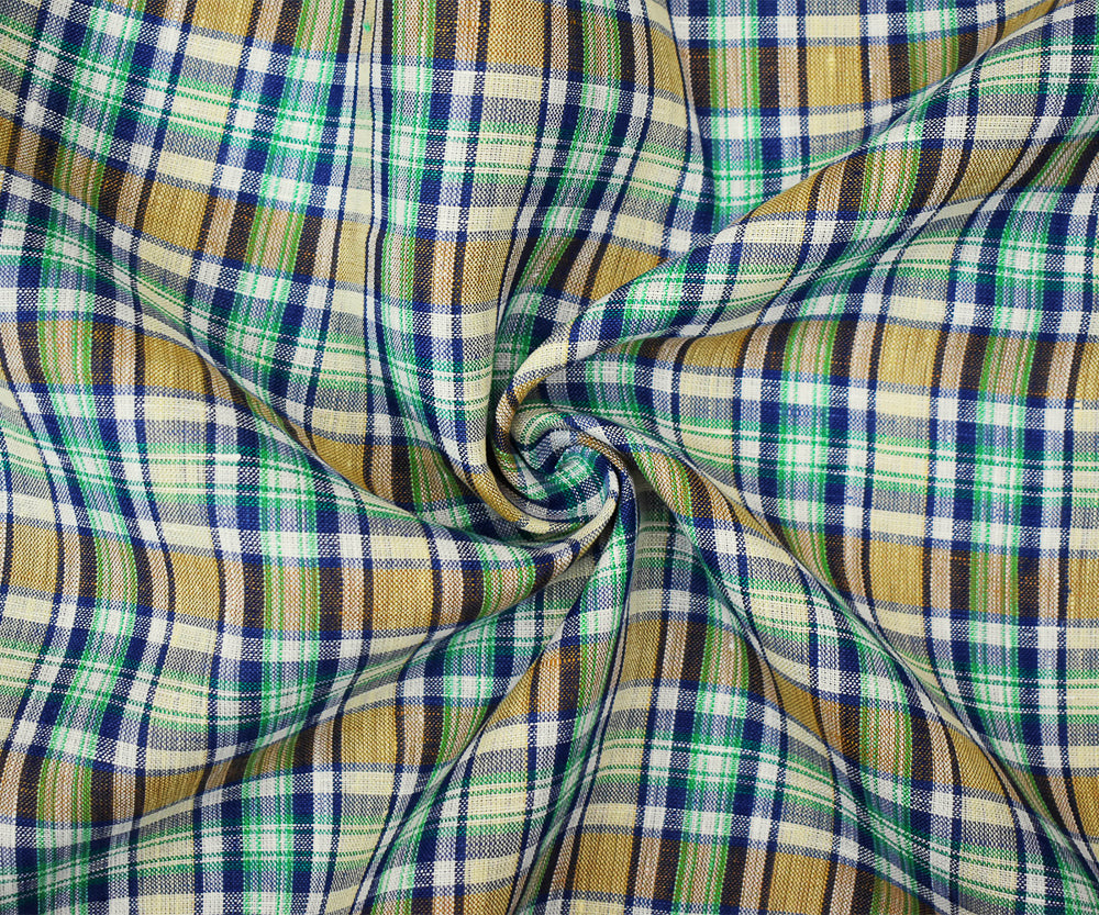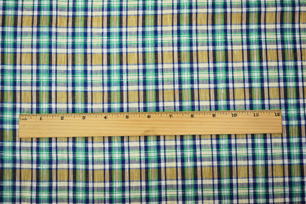 Green-Blue-Multi Plaid Linen Woven Fabric