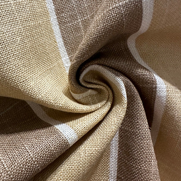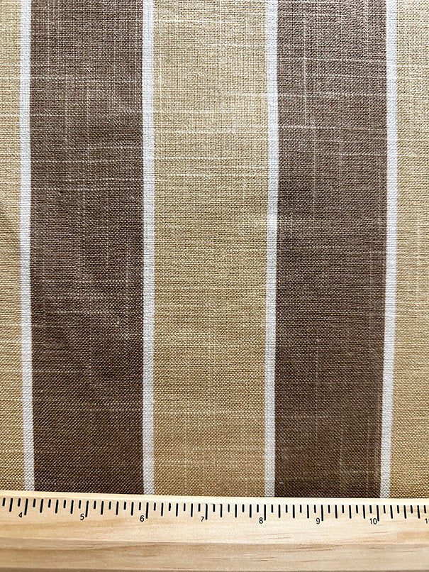 Chocolate Caramel Stripe Print Flax Linen Blend Drapery Fabric