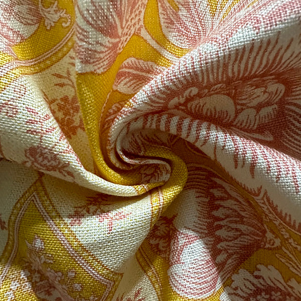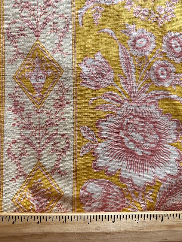 -Pink & Gold Print on Ivory Linen Drapery Fabric