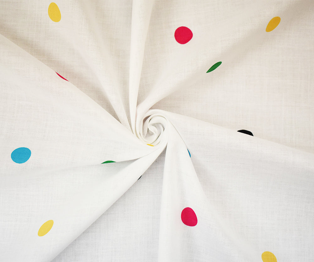 Green-Yellow-Multi Bordered Polka Dots Printed Cotton Batiste Woven Fabric