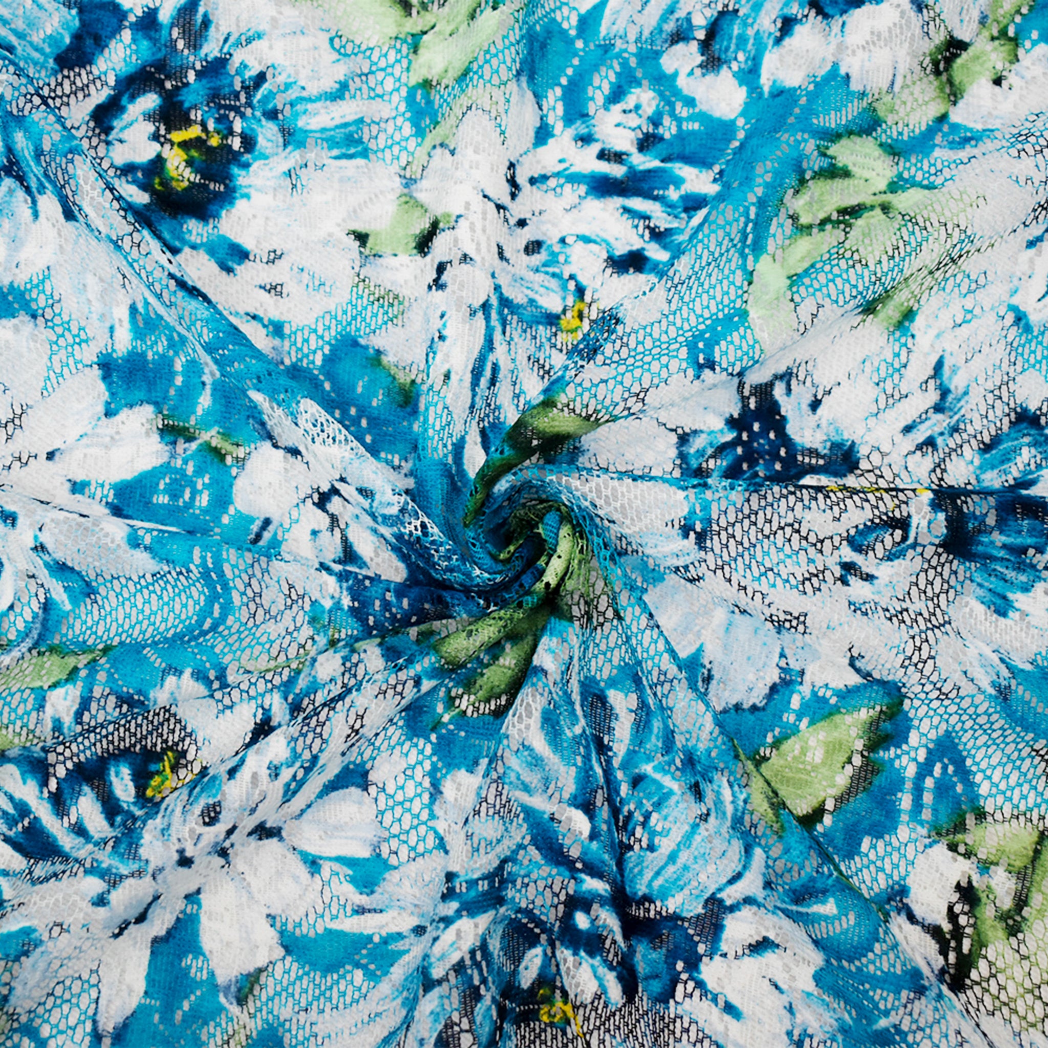 Deep Teal-Multi Poly Rayon Floral Printed Crochet Lace Knit Fabric