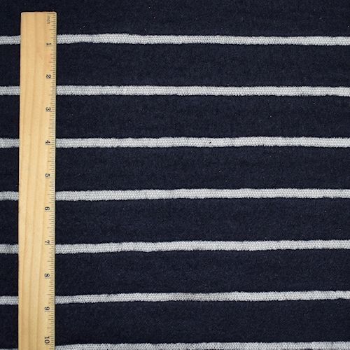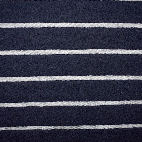Navy Wool Blend Semi-Opaque Striped Pile Mesh Fabric