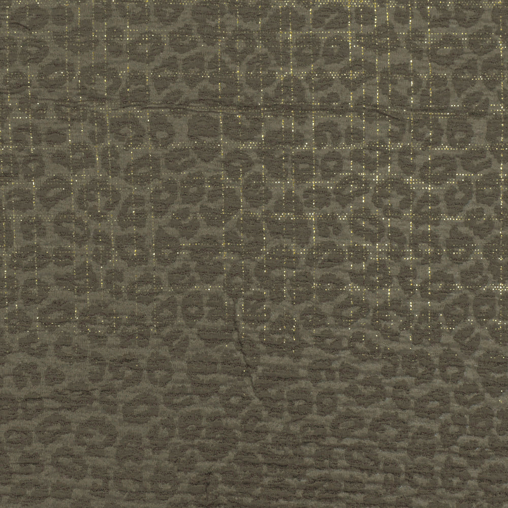 Ash Olive-Gold Crinkle Leopard Metallic Plaid Stretch Double Knit Fabric