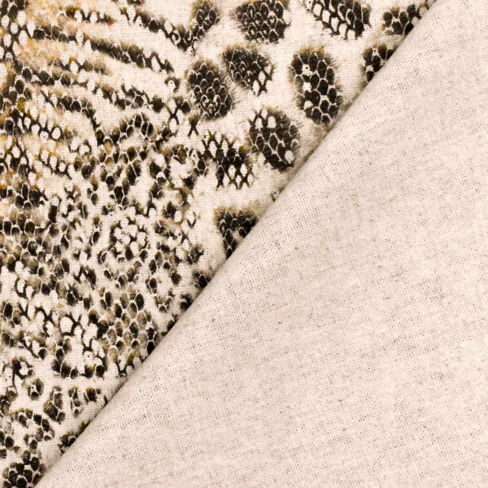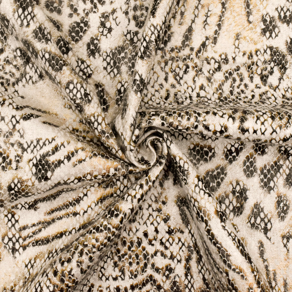 Beige-Black-Multi Reptile Skin Printed Linen Blend Woven Fabric