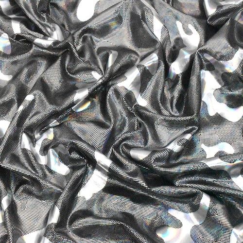 Holographic Silver Camo Printed Stretch Activewear Fabric