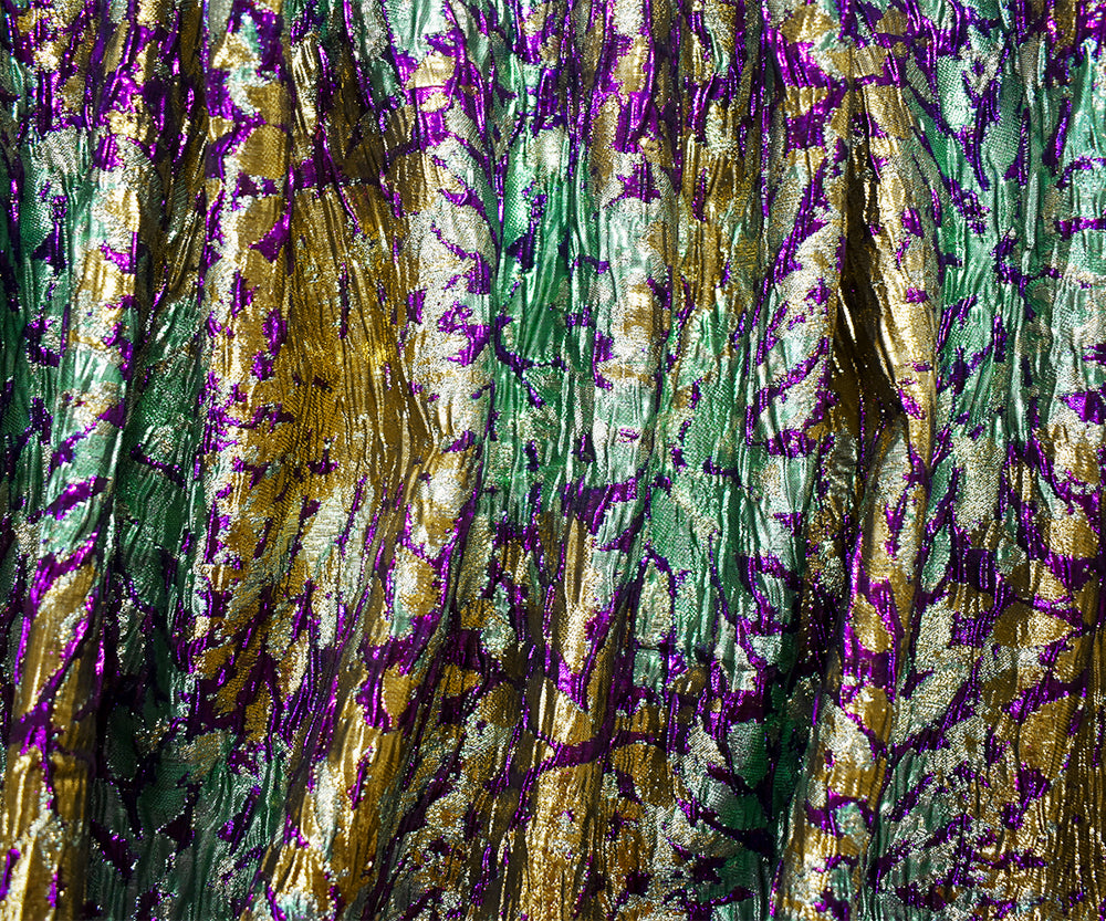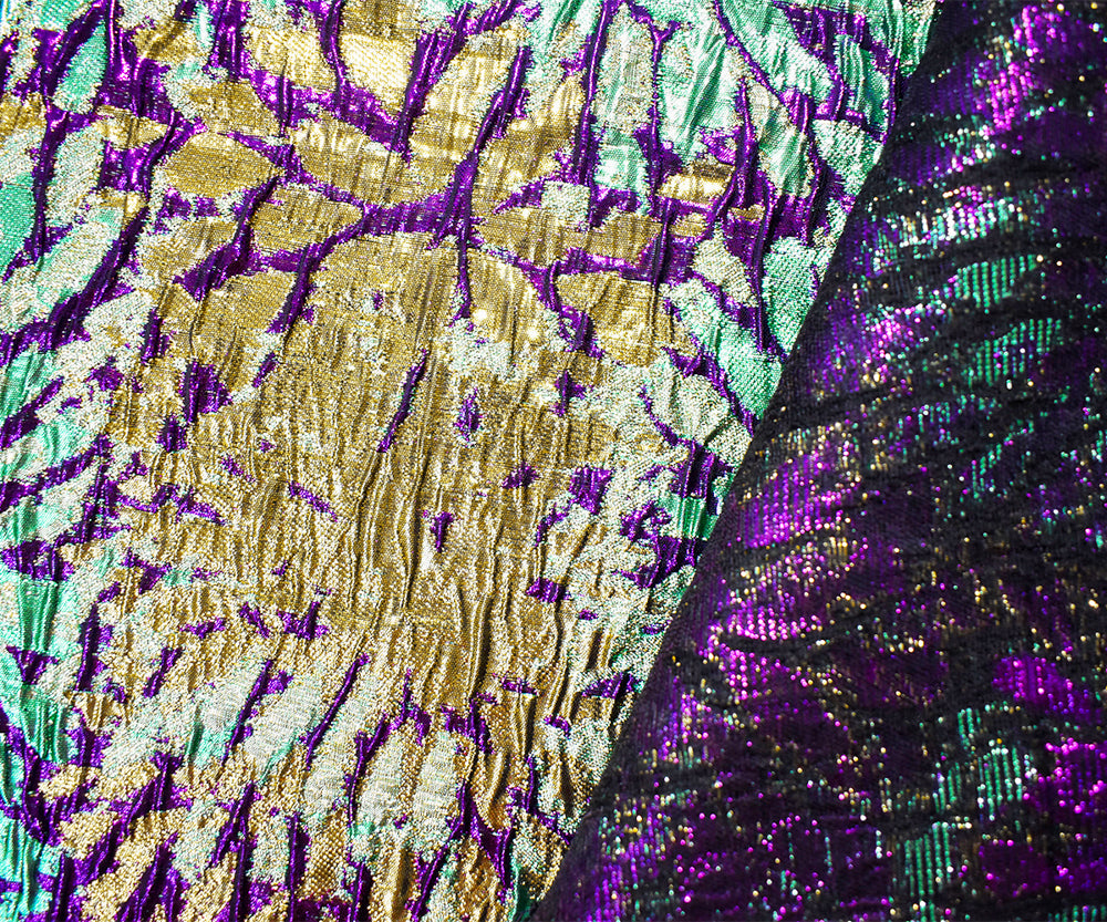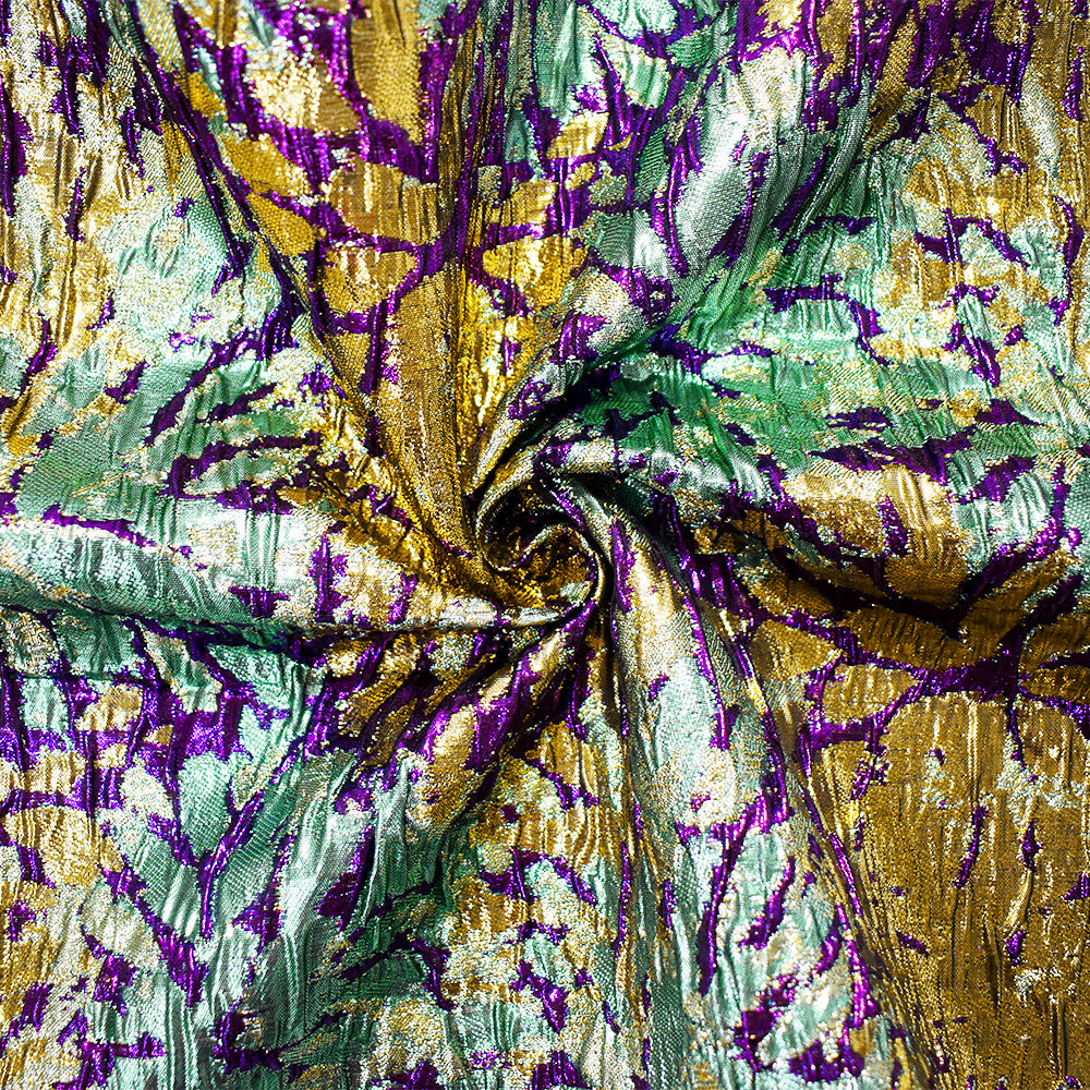 -Poly blend metallic matelasse jacquard brocade woven fabric featuring an abstract floral textured pattern