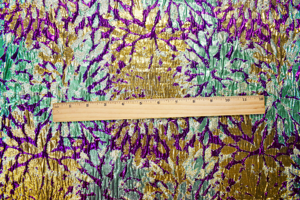 Purple-Multi Poly Blend Abstract Floral-Matelasse Brocade Jacquard Fabric
