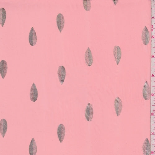 Salmon Pink/Gold Foil Leaf Chiffon Fabric
