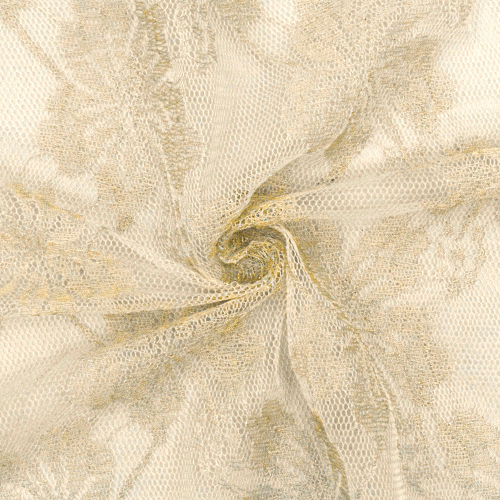 White-Gold Sparkle Floral Metallic Lace Fabric
