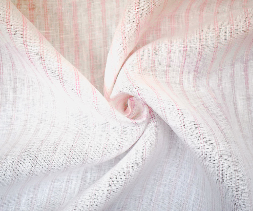 Light Pink-White Spence Bryson Stripe Irish Linen Slub Woven Fabric