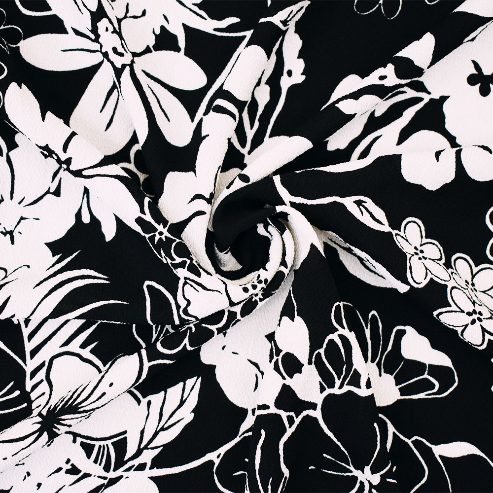 -100% polyester pebble crepe woven fabric printed with a floral pattern