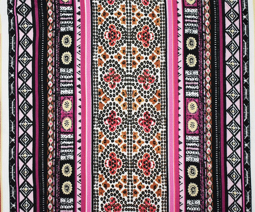Black-Pink Polyester Tribal Stripes Printed Crepe Texture Georgette Fabric