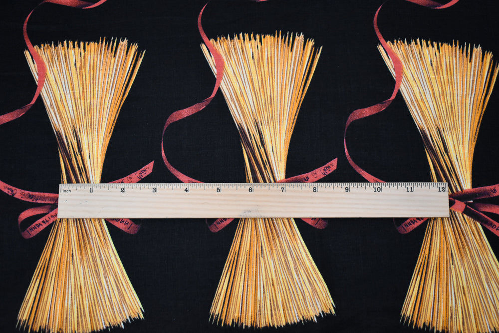 Black-Yellow-Red Ribbon Straw Printed Linen Woven Fabric