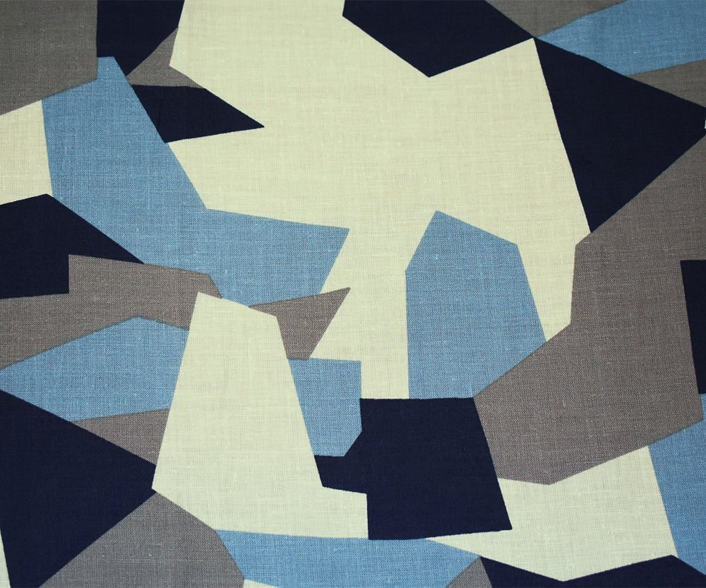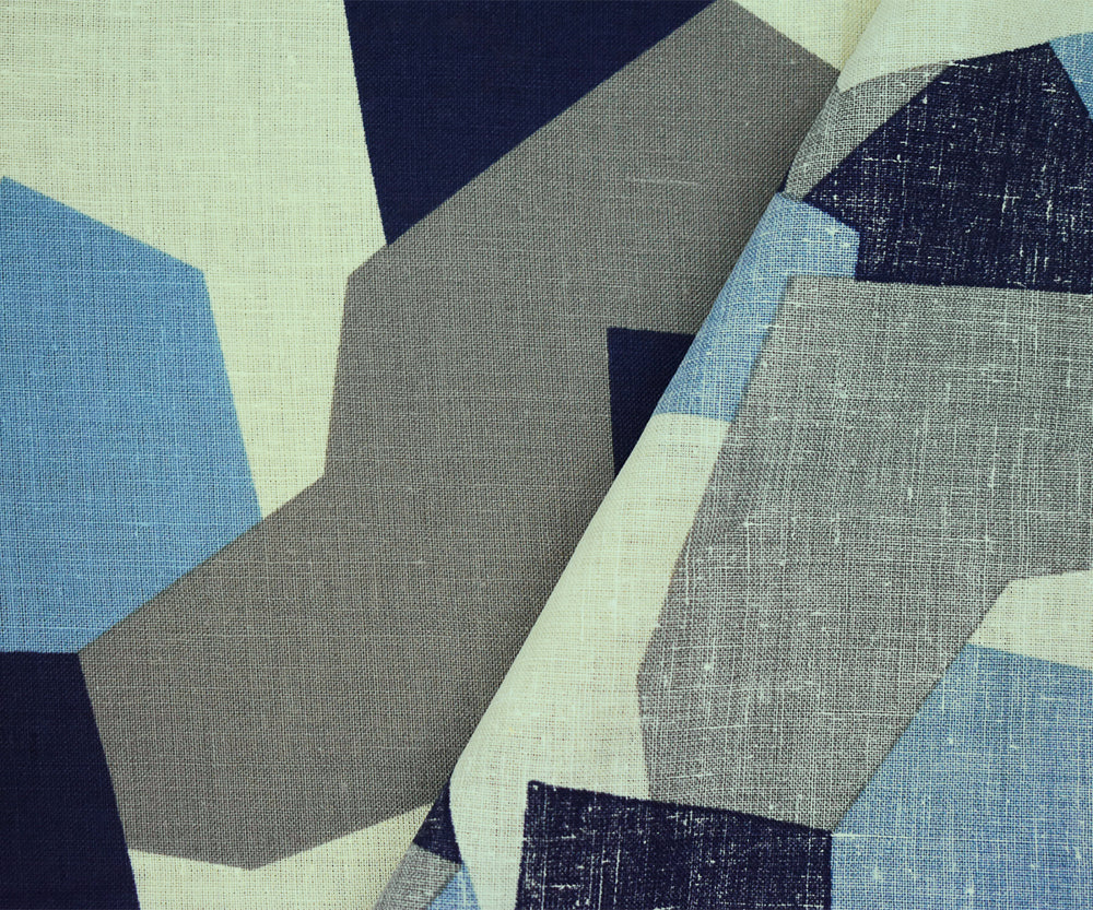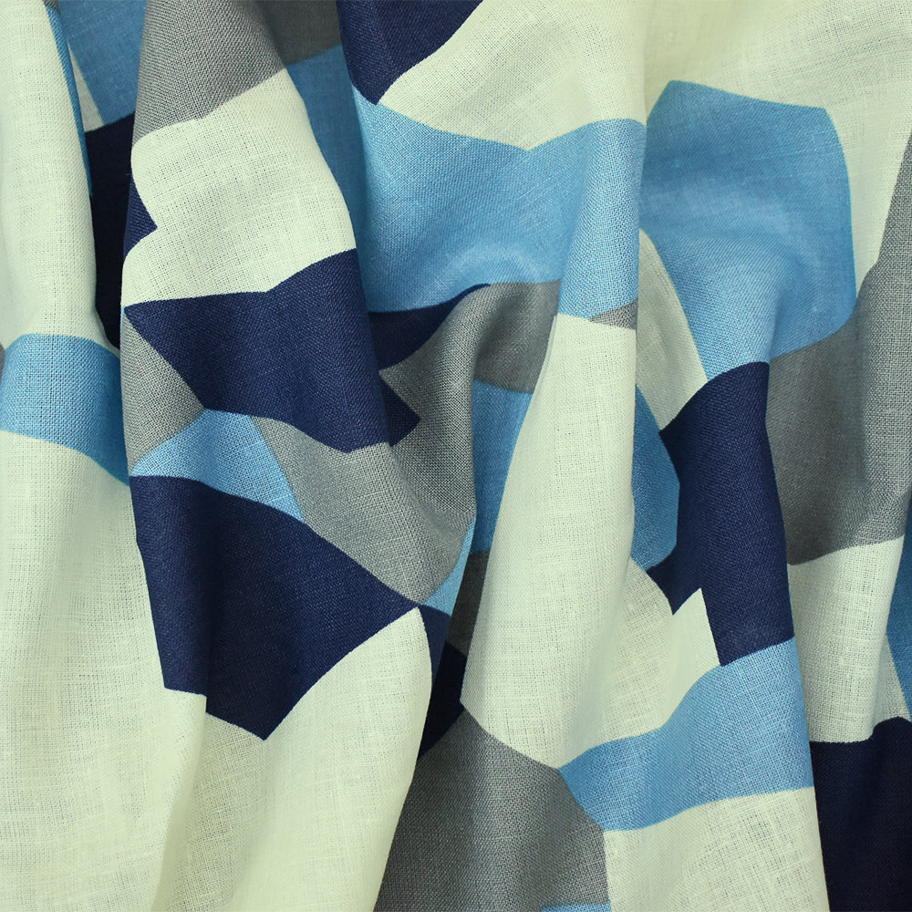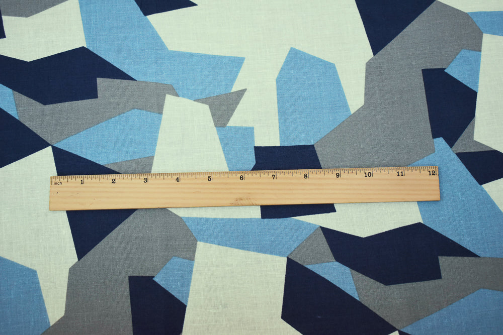 Blue-Gray-Multi Abstract Geomtric Printed Linen Woven Fabric