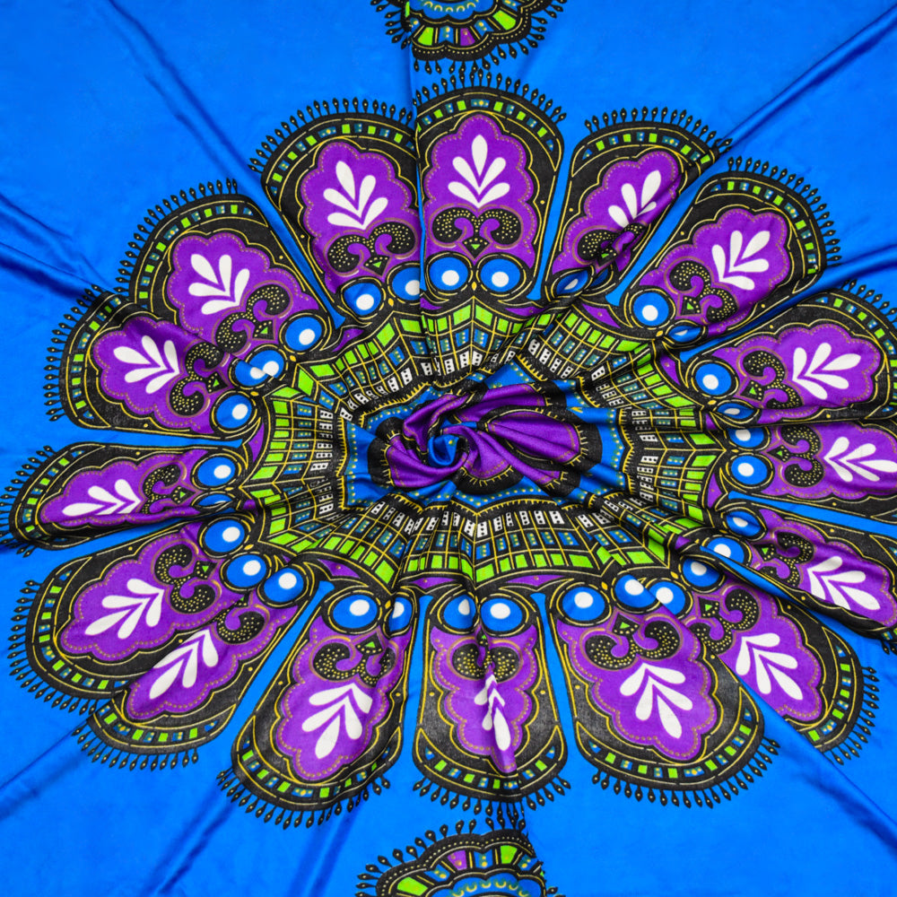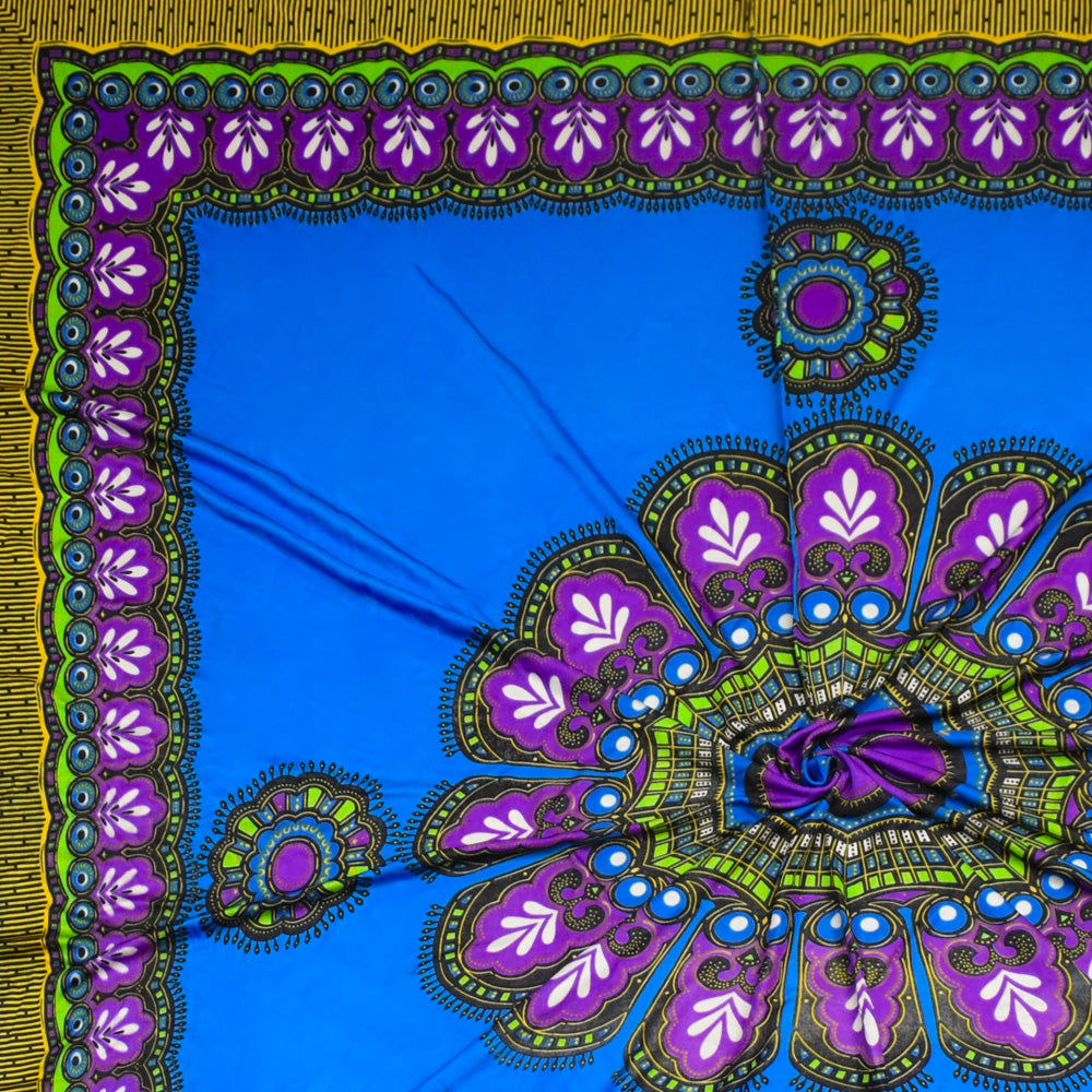 -100% silk jersey knit fabric printed with a bordered pattern with a flower medallion pattern on the center. Please note that this is sold in panels, ideal for scarves. One piece will have a bordered art that is approximately 42" x 44" inches on a approx. 45"x 45" Panel Cut.