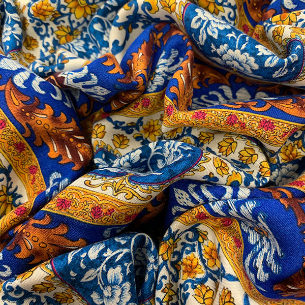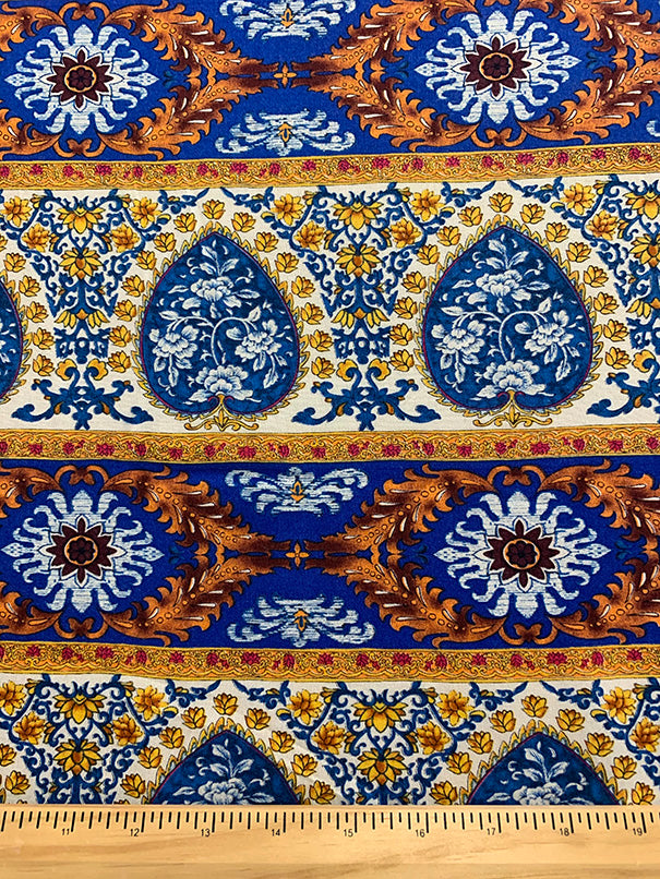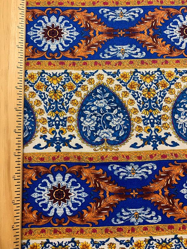 Blue Multi Stripe Print Rayon Challis Fabric
