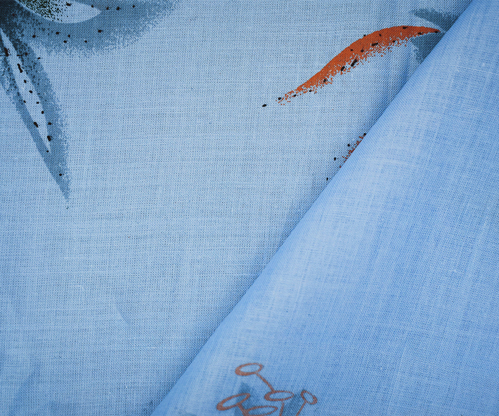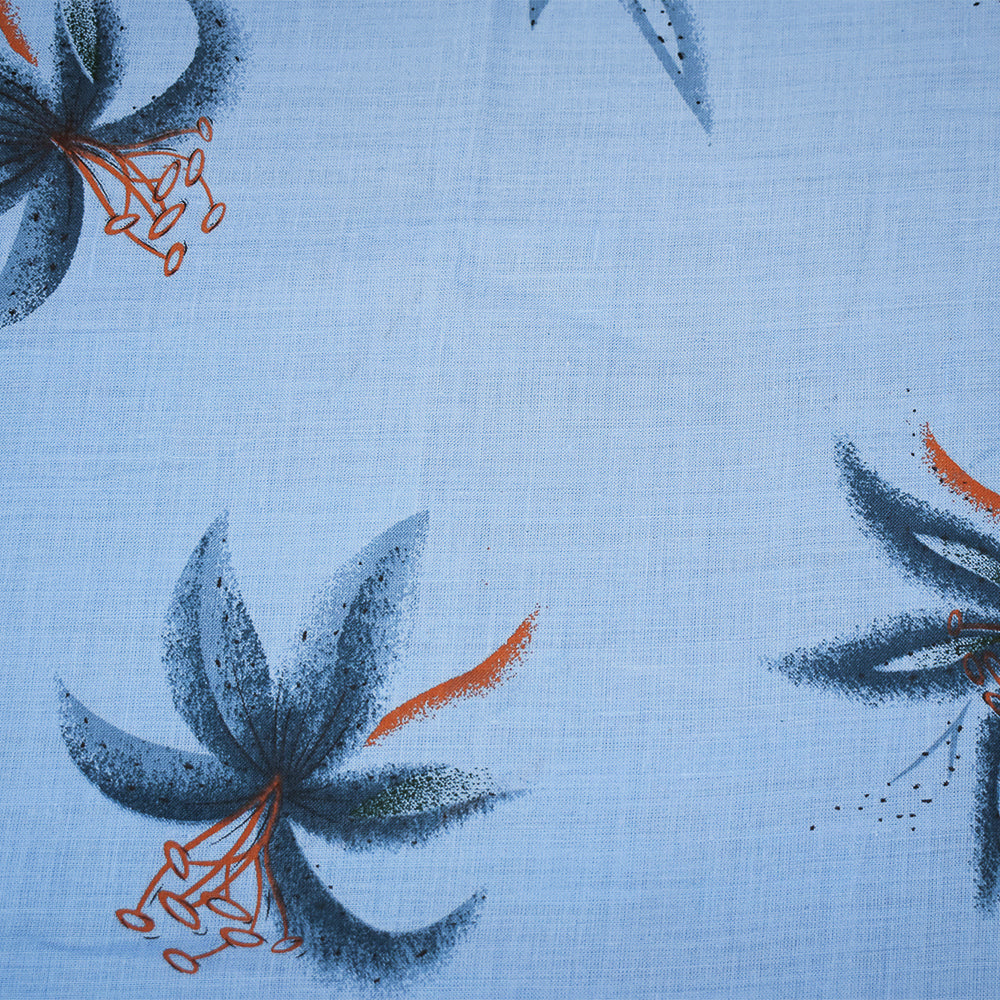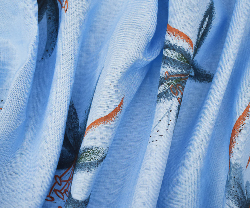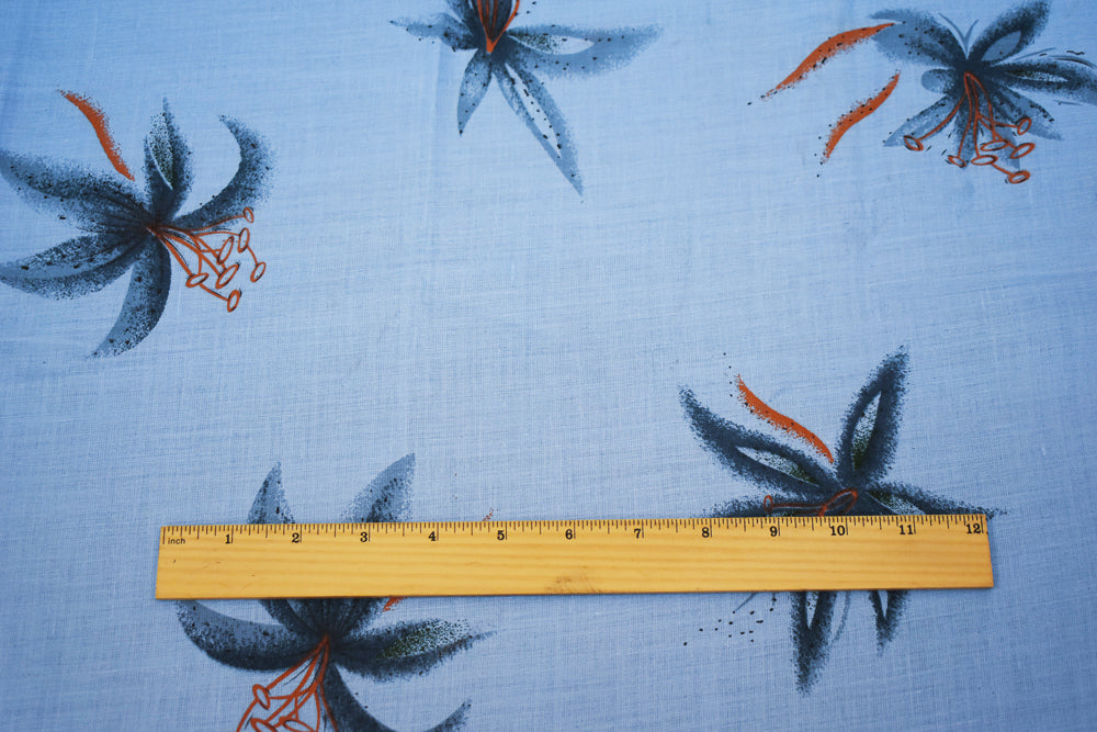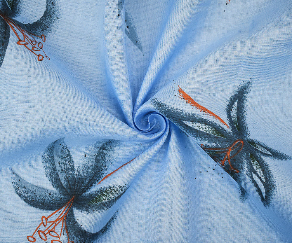 Blue-Orange-Multi Lily Printed Linen Woven Fabric