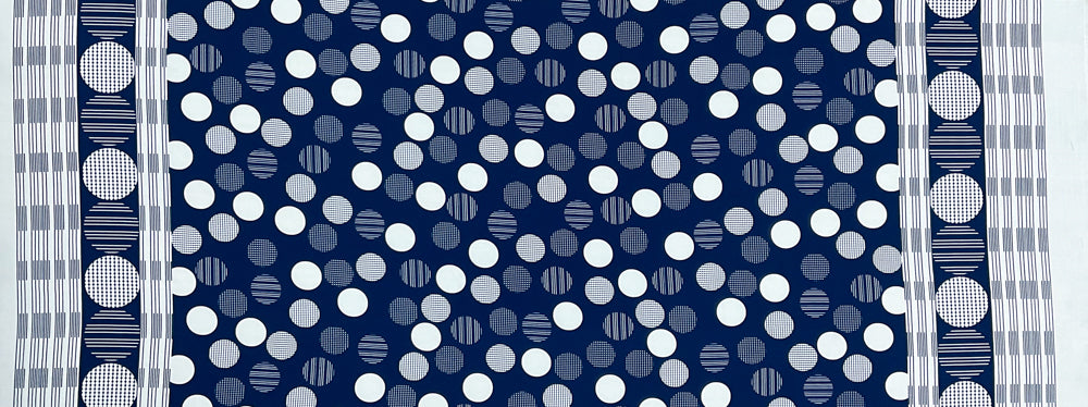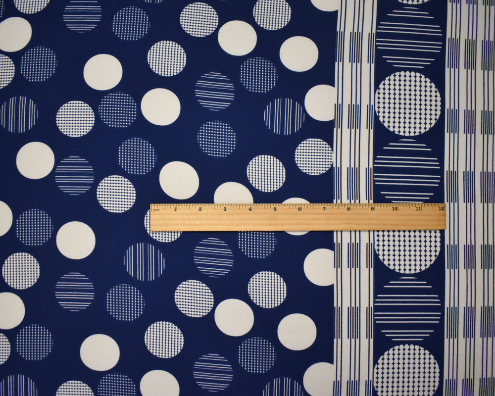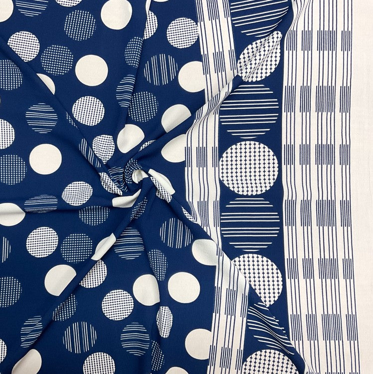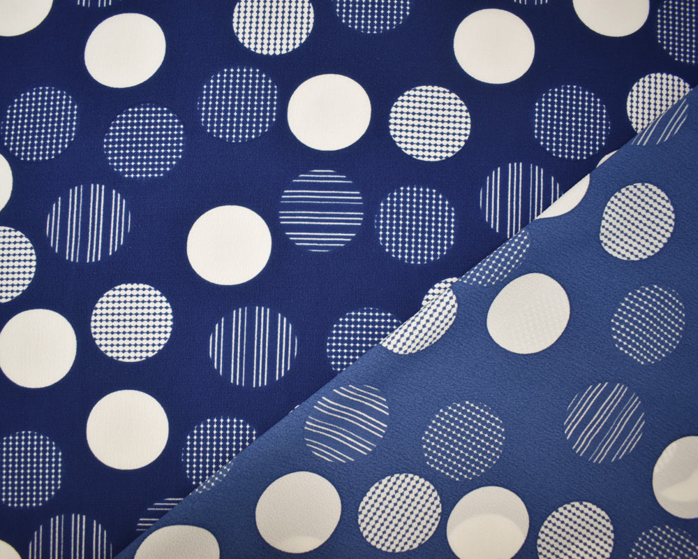 -Blue-White Poly Circle Abstract Printed Pebble Crepe Woven Fabric