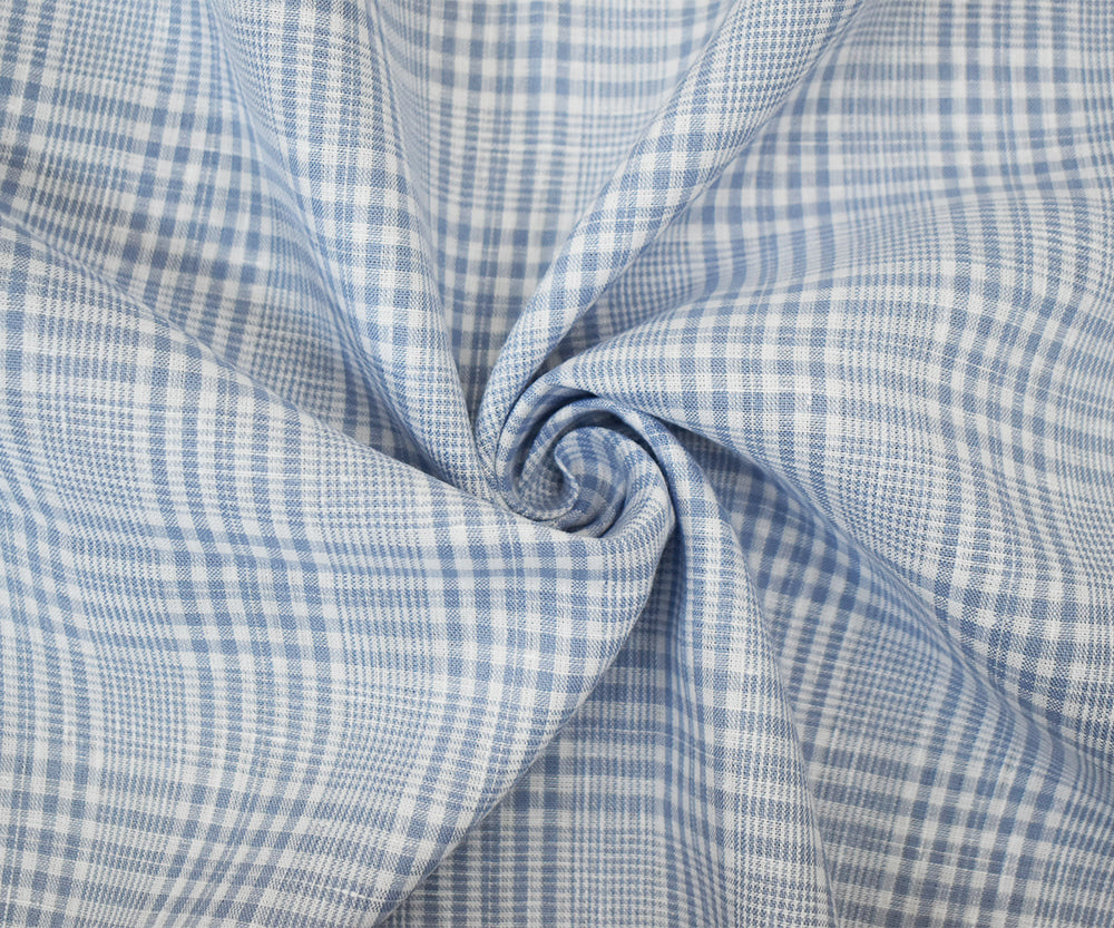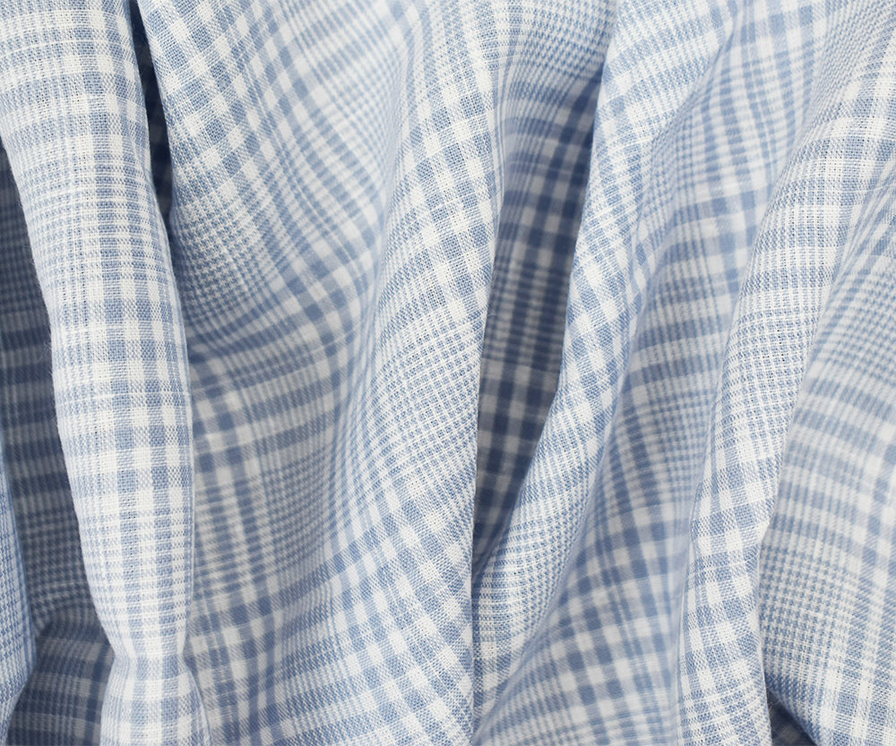 Blue-White Spencer Bryson Plaid Irish Linen Woven Fabric