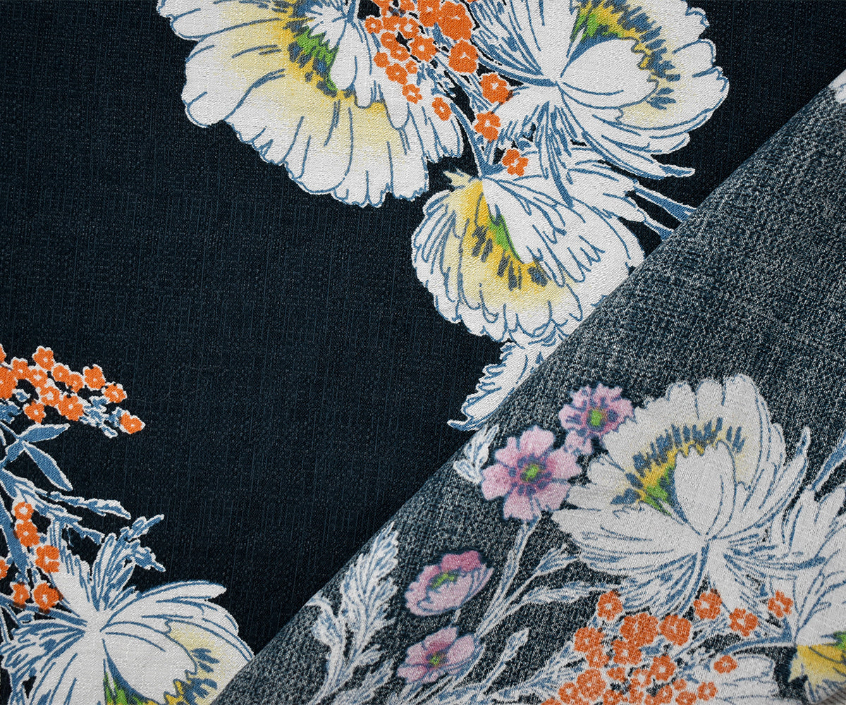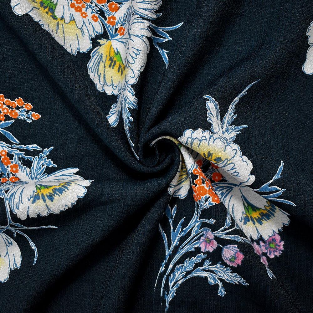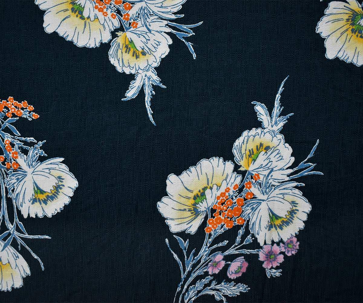Dark Navy-Yellow-Multi Cotton Poly Floral Printed Dobby Woven Fabric