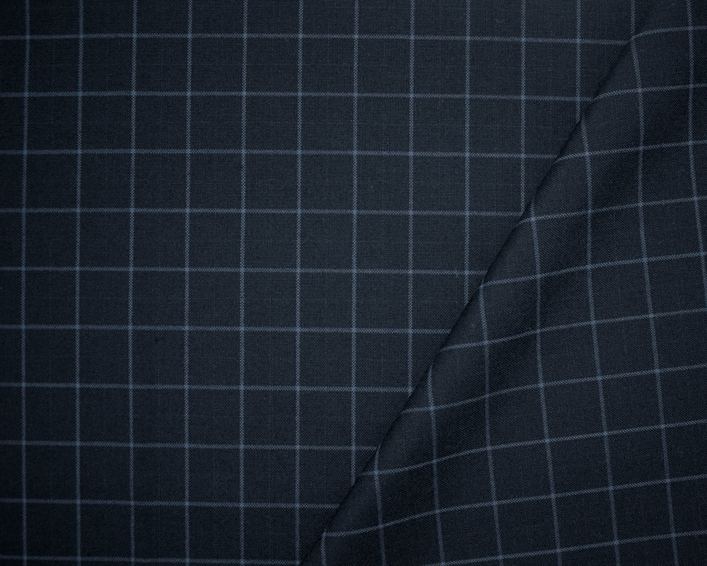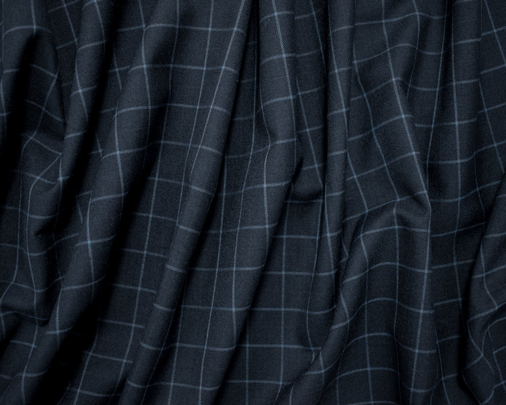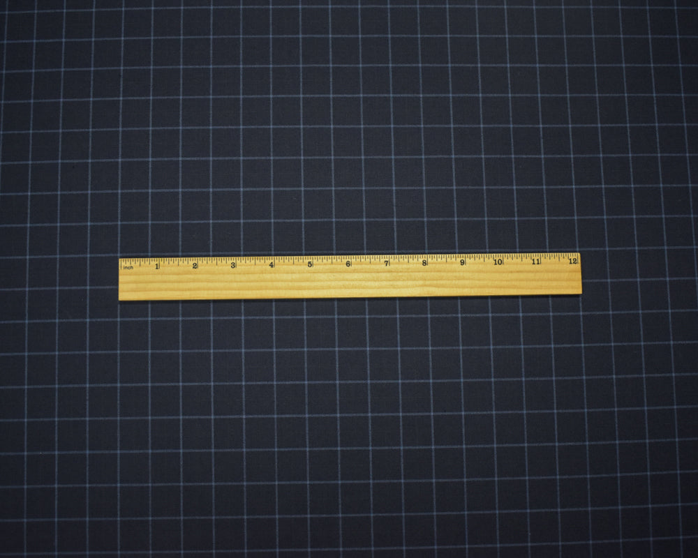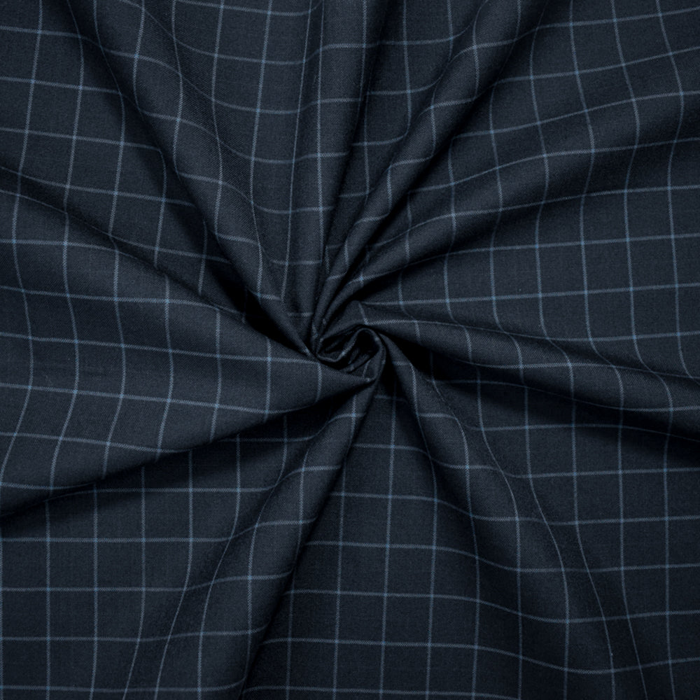 Deep Navy-Blue Wool-Polyester Japanese Check-Plaid Woven Shirting Fabric