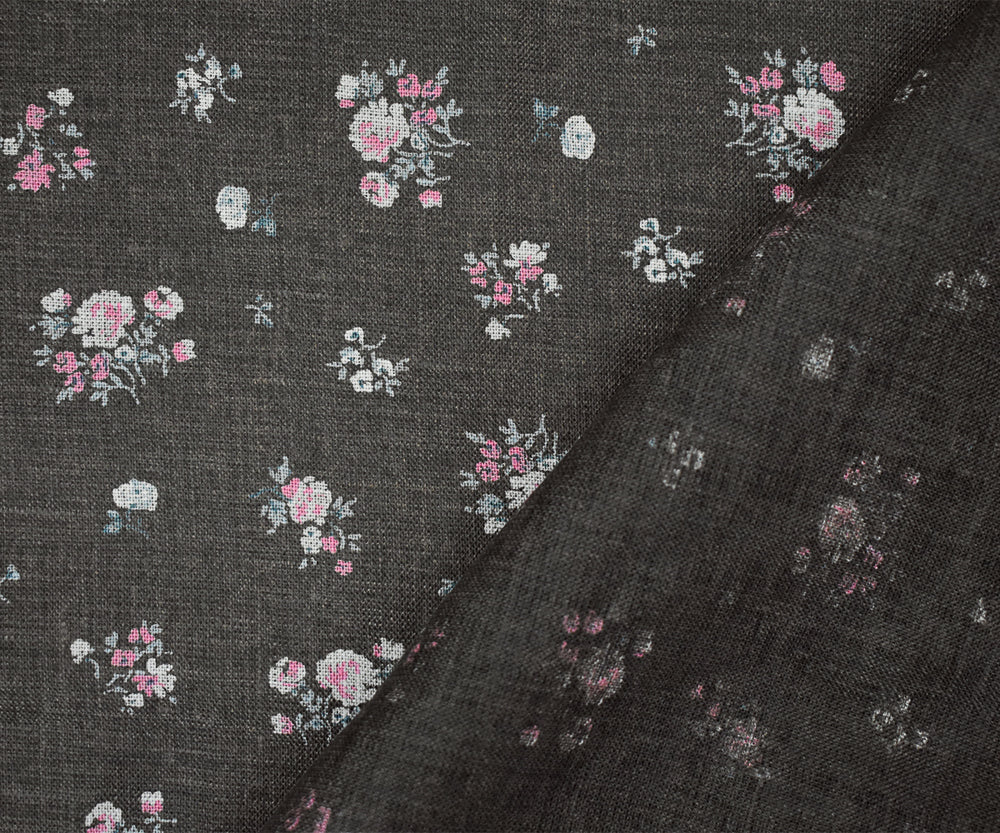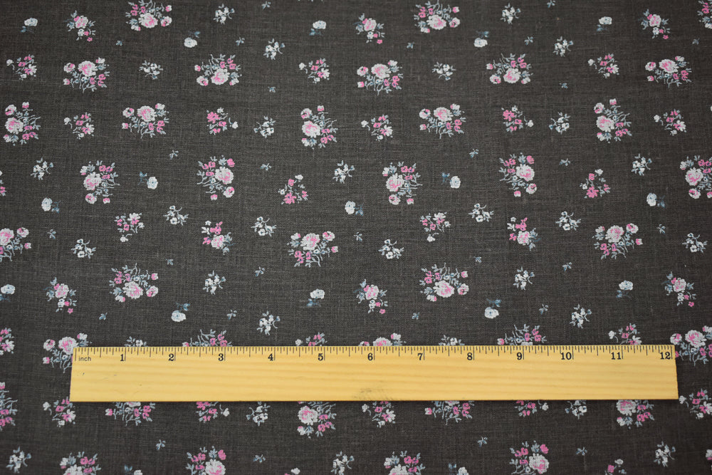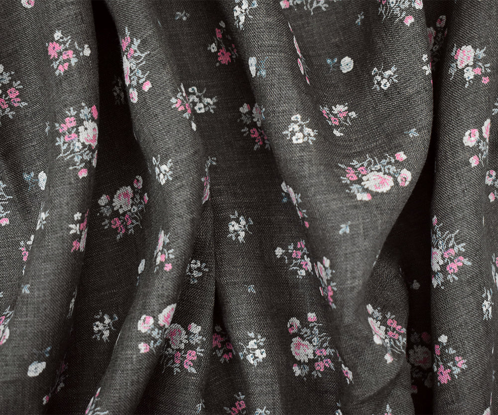 Gray-Pink-Multi Ditsy Floral Printed Linen Woven Fabric