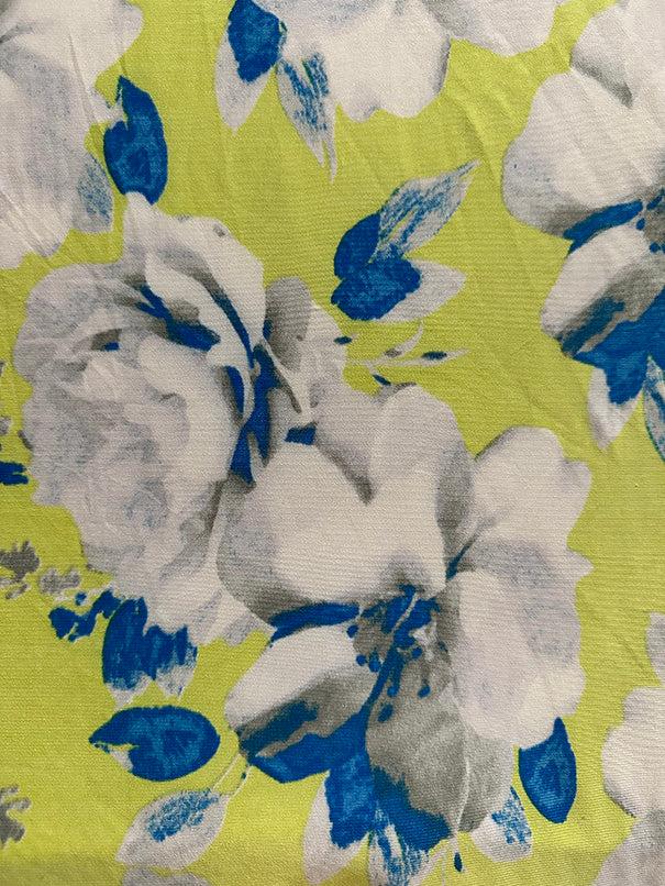Neon Yellow Floral Print ITY Jersey Knit Fabric