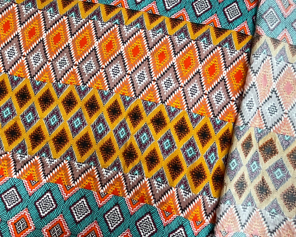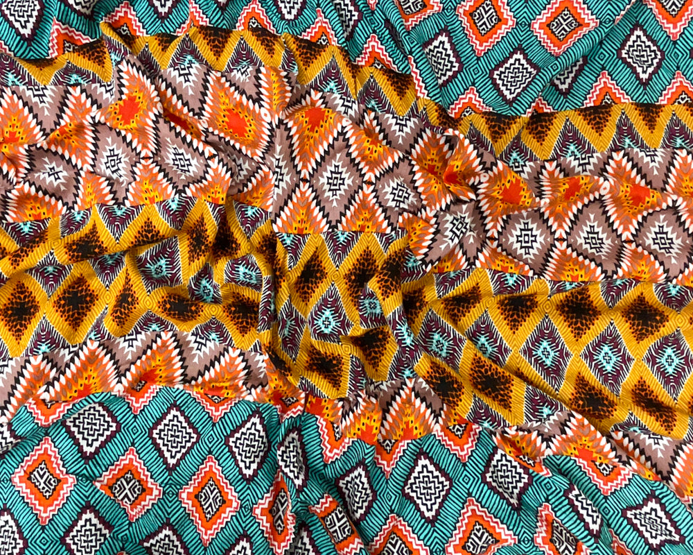 -Orange-Turquoise-Multi Multi Cotton Aztec Printed Gauze Woven Fabric