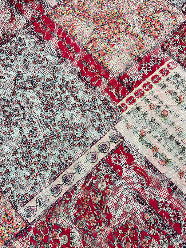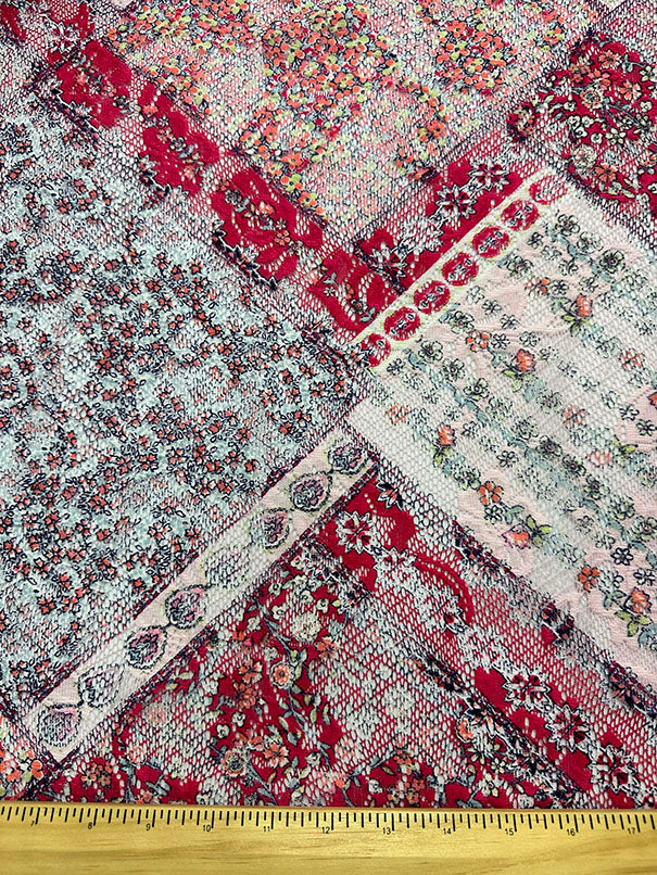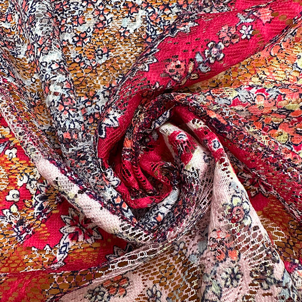 Pink Multi Diamond Print Poly Lace Fabric