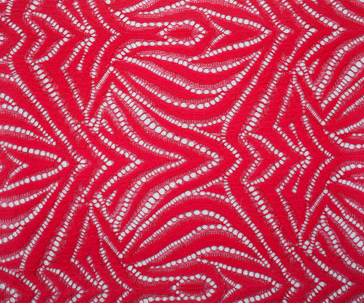 Red Cotton-Polyester Abstract Crochet Lace Knit Fabric