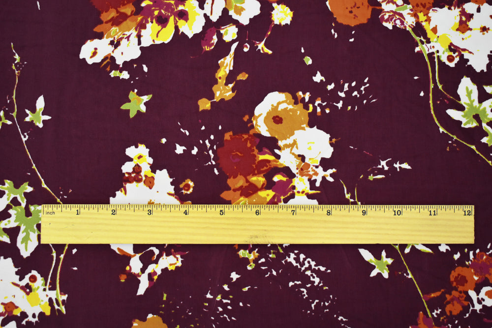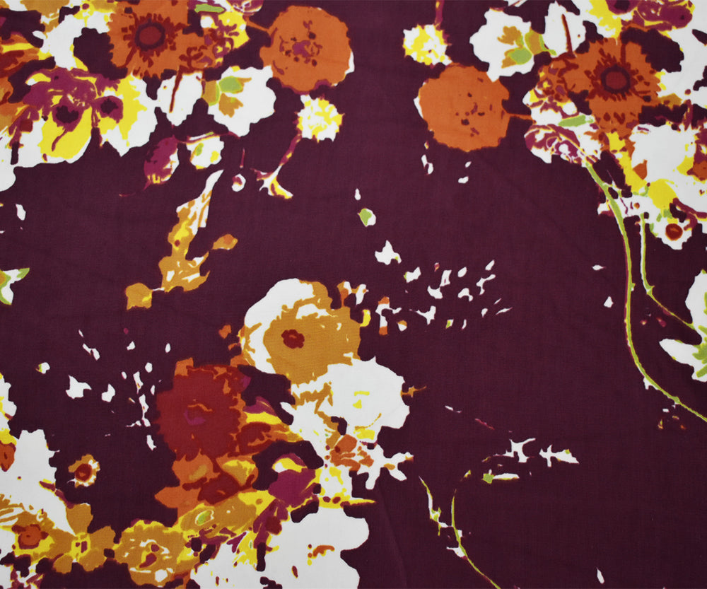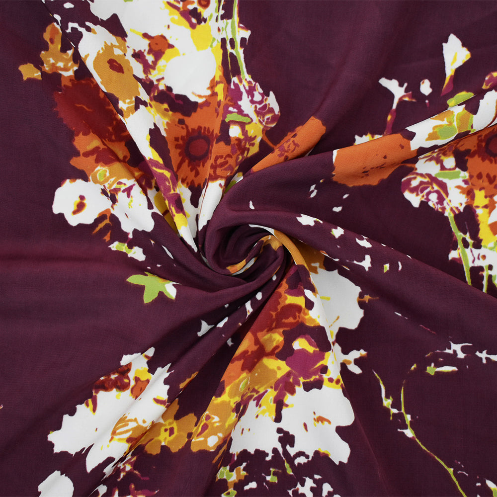 Red-Orange-Multi Poly Floral Printed Faille Woven Fabric