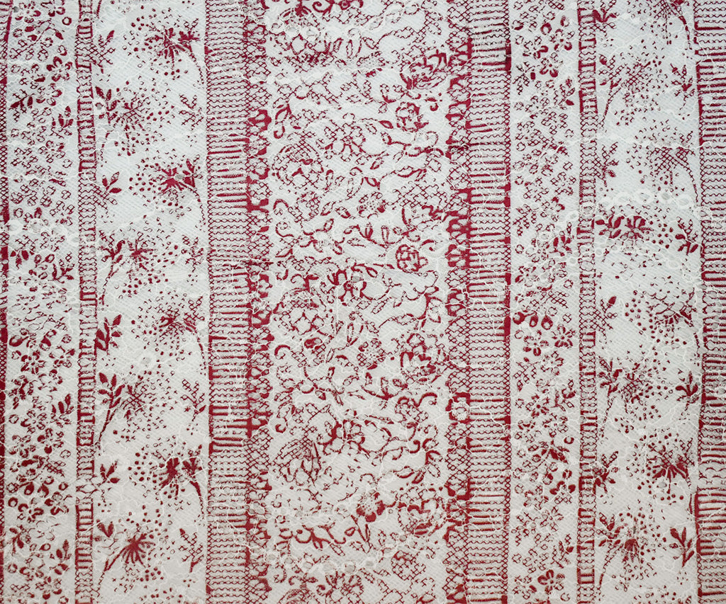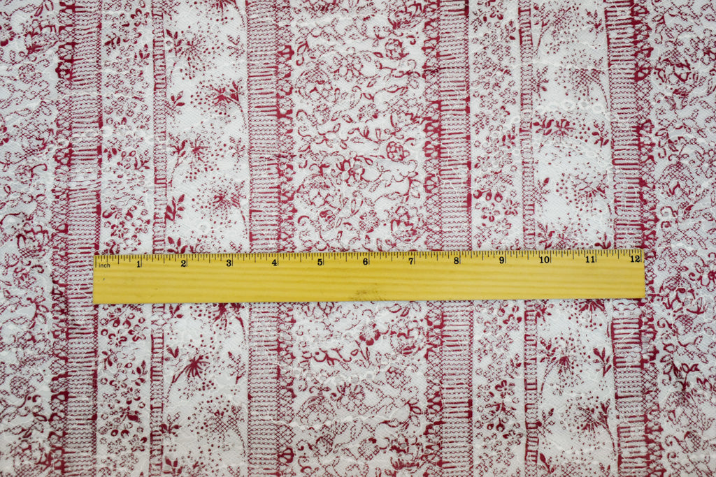 Red-White Nylon Floral Stripe Printed Lace Mesh Knit Fabric