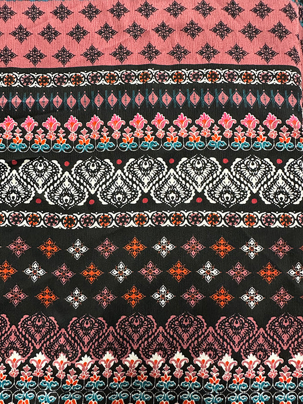 Rose Multi Stripe Print High Crepe Fabric