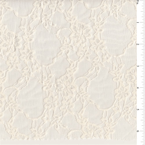 Ivory floral stretch lace fabric. This light weight sheer lace fabric has ample 4 way stretch and recovery.