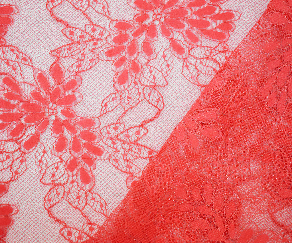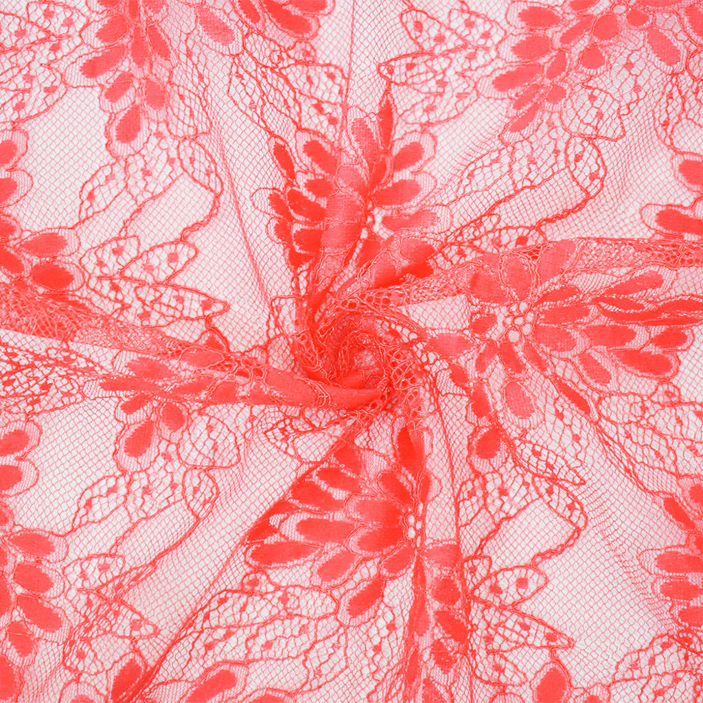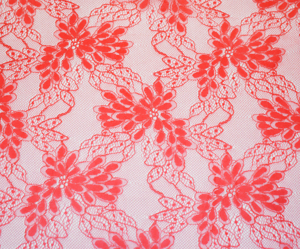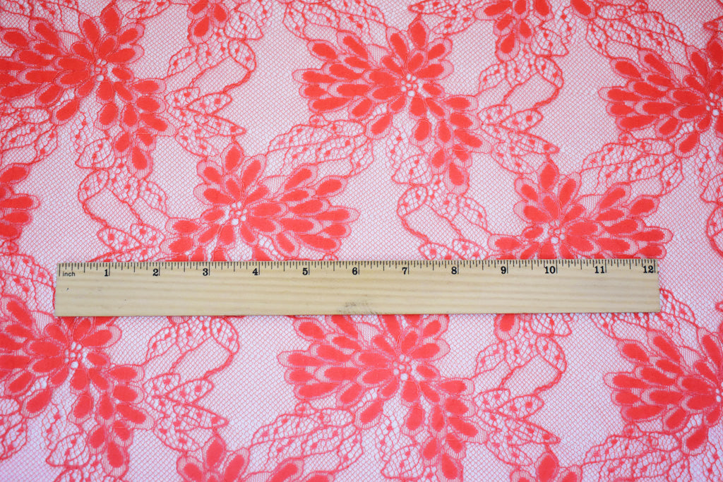 Coral Red Nylon Cotton Floral Lace Mesh Knit Fabric